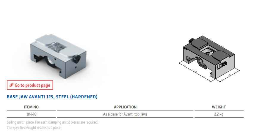 Lang tech vise Base Jaw Avanti 125, Steel (Hardened) China Zeropoint tooling maker