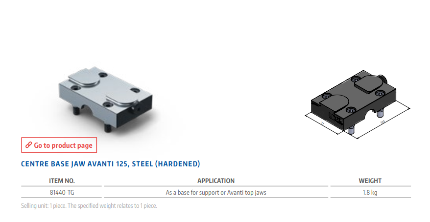 Lang tech vise Centre Base Jaw Avanti 125, Steel (Hardened) China Zeropoint tooling maker
